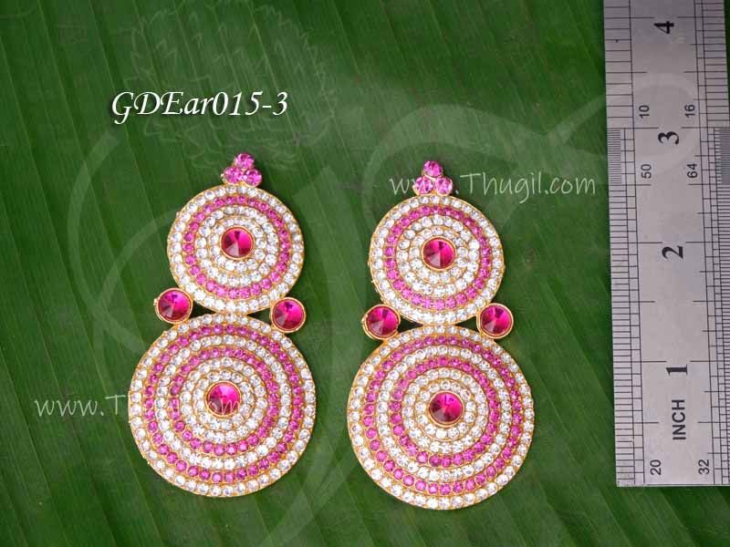 Medium size ear ornamental jewelry. White and pink stone studded earrings for deity decorations.