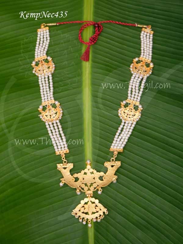Kemp Haaram Necklace Temple Jewellery with Pearl 4 lines Muthumalai 13 inches