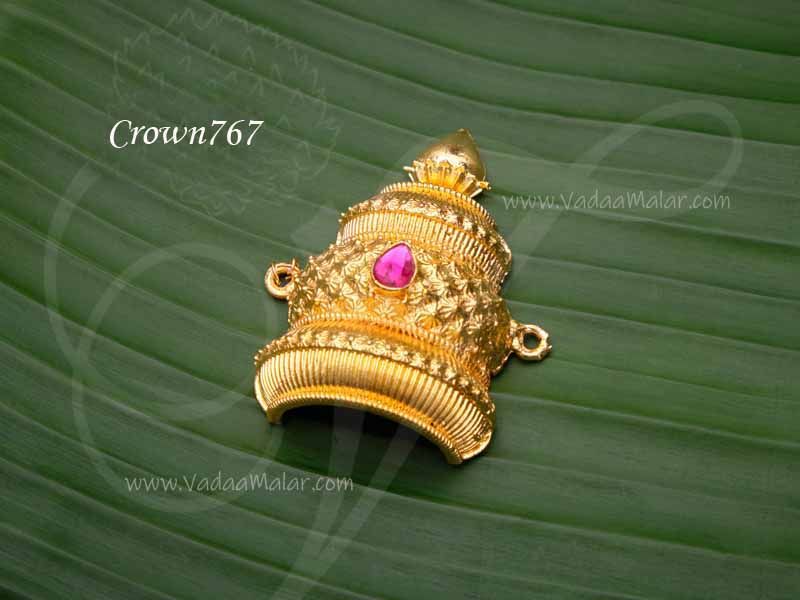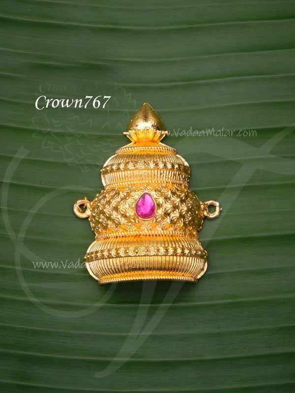 Crown for Hindu God and Goddess. Half crown to cover the head.Gold plated Hindu Indian God crown. Used for Hindu Idol Goddess deity and idols. Mukut to fit the half head of the Idol.