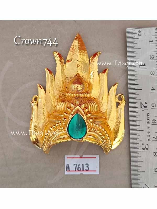 Crown for Hindu God and Goddess. Half crown to cover the head.Gold plated Hindu Indian God crown. Used for Hindu Idol Goddess deity and idols. Mukut to fit the half head of the Idol.