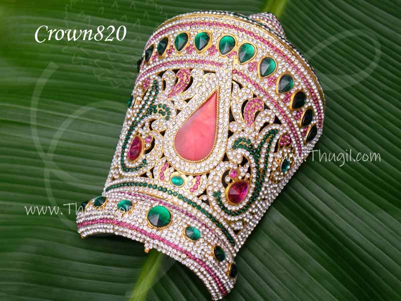 Kireedam for perumal vishnu venkadeshwara God and Goddess statues. Crown for deity. Made of metal and decorated with glittering stones. This is a half crown made to fit the front portion of the head.
