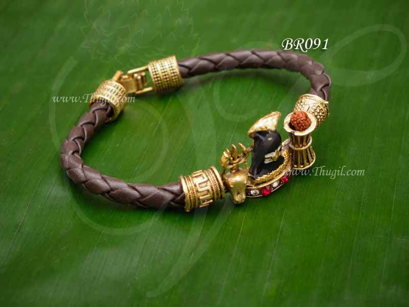 Lingam Design Leather Bracelets Kada For Men And Women Adjustable Size