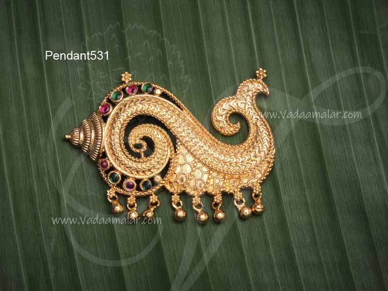 Lord Balaji Sangu Design Multi Colour Stones Pendant 2.2 inches