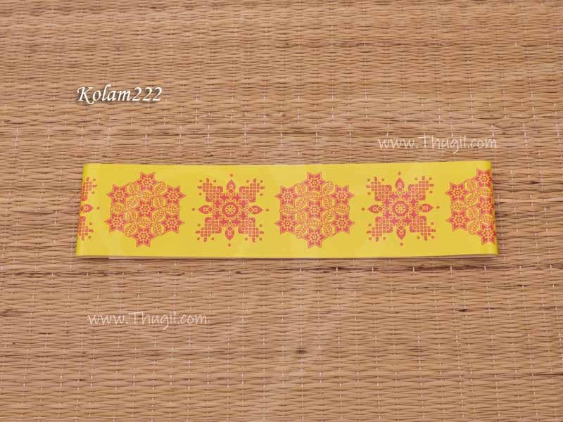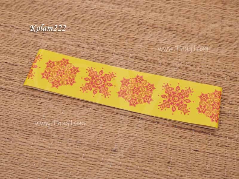 Yellow Decorative Kolam / Rangoli rectange Sheets. Sticker koolam sheets used in pooja rooms, mandabs and temples.