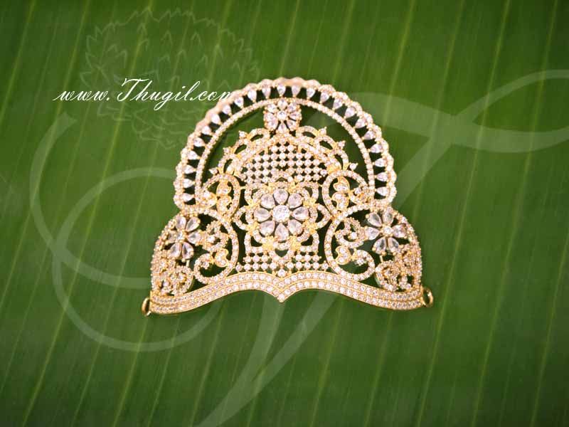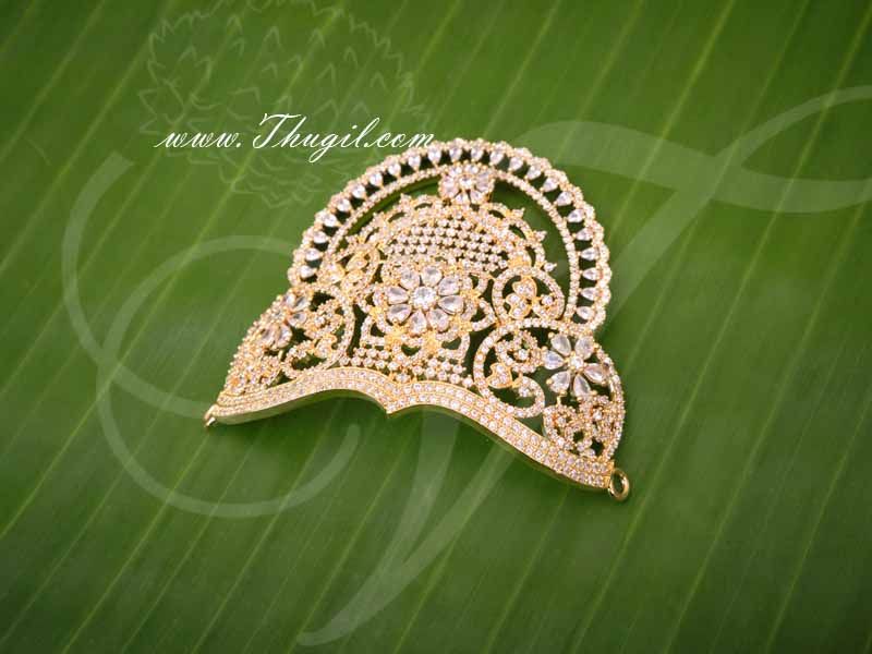Deity Crown in small size. Gold polished metal and decorated with American diamond and white stones.