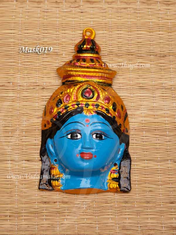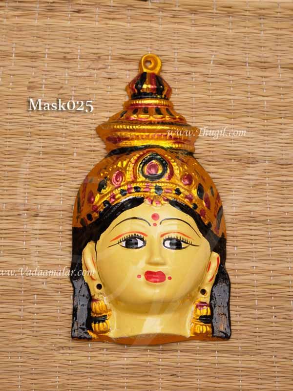 Beautifully decorated mask used for pooja during DurgaDevi and Dhasara Pooja. Dhasara Pooja is celebrated all over India for prosperity and peace. People from all walks of life celebrate this festival seeking the blessing of the Goddess Durga.