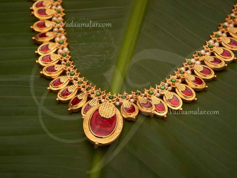 Necklace Indian Kerala Pearl Palakka Red Enamel