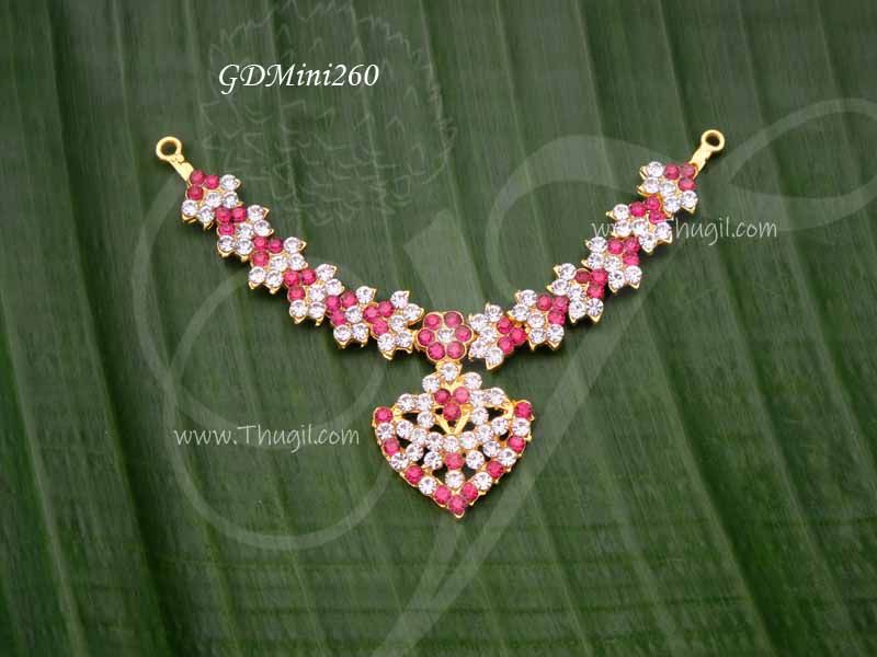 Necklace small size sets in white with pink color stones. Beautiful jewelry for Hindu Gods and Goddesses.
