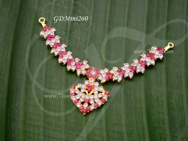 Necklace Small Size White With Pink colour Stones Deity Jewellery 2.5 inches