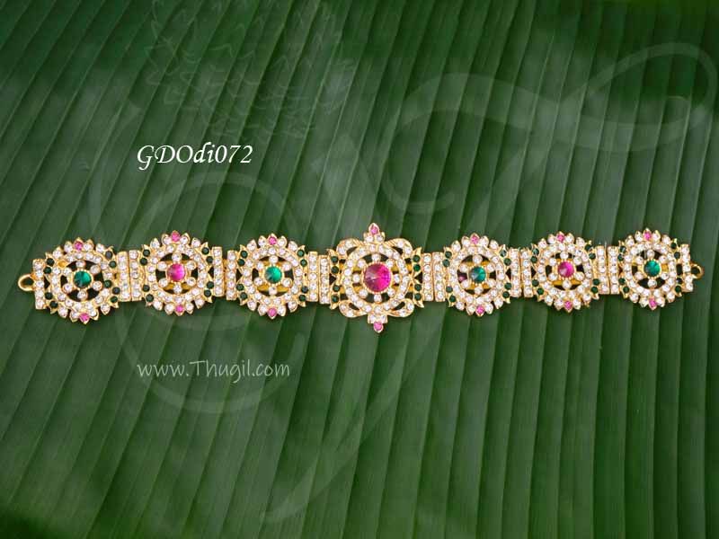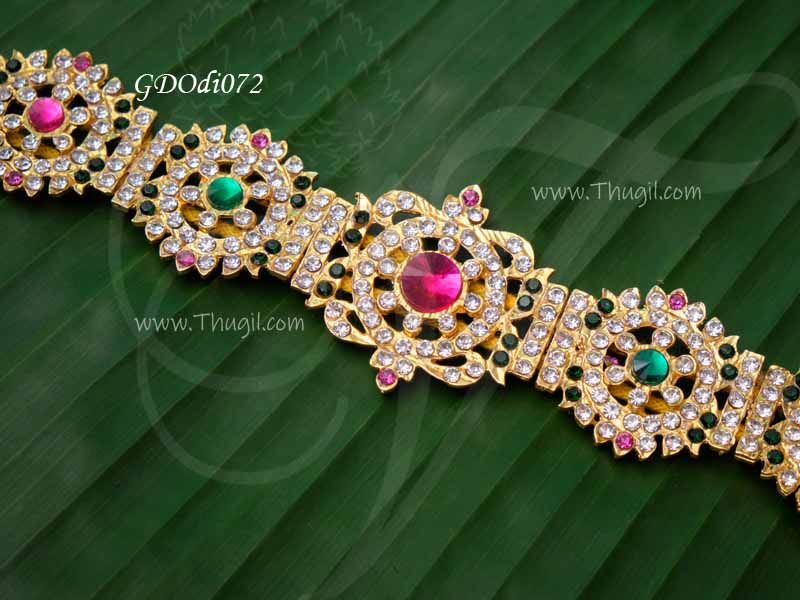 Odiyanam (Waist belt) for Hindu God and Goddess. Beautiful pattern of multi colour stones adorning the center piece of this Vaddanam.