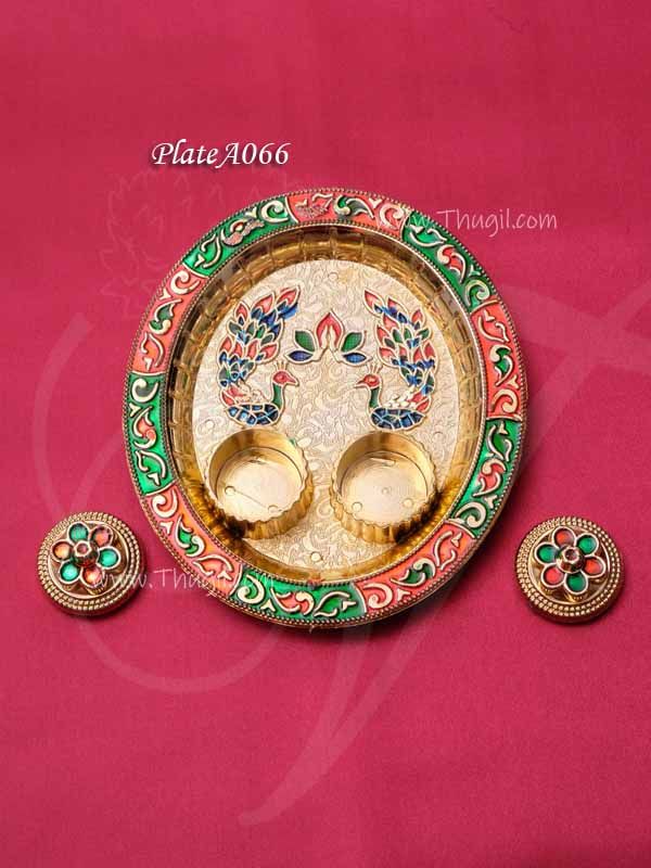 Peacock Design Enamel Stone Chandan Kumkum Holder Return Gift 5.8 Inches