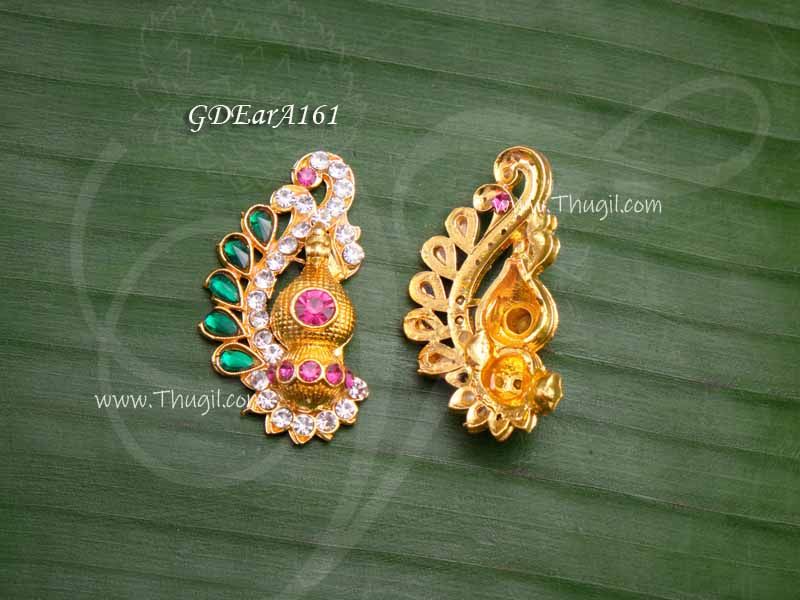 Glittering stones earring set. Also called Karna patham this ear jewellery is used in decorate the statue of God and Goddess.