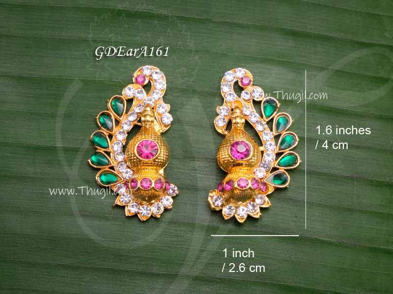 Ear ornamental jewelry for statues. This earring set studded with glittering pink ,white and green colour stones. Elegantly jewelry for Hindu Deity Shringhar.