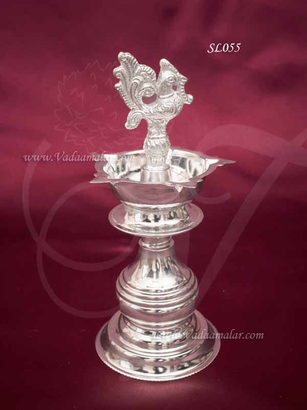 Peacock Lamp German silver diya vilakku deepam - 10 inches