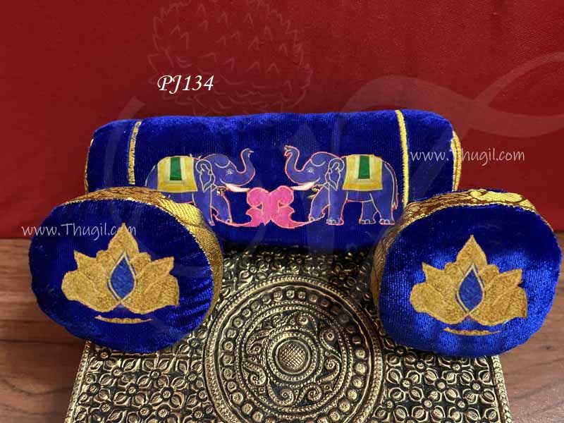 Beautifully handmade soft pillow or Dhindu for swamy. Soft velvet cloth with embroidery designs of Elephant. Used during Hindu celebrations.