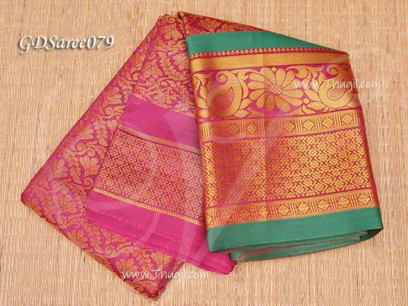 Pink Saree For Amman Devi Durga Sari Zari Border Deity Vastra 6 meters