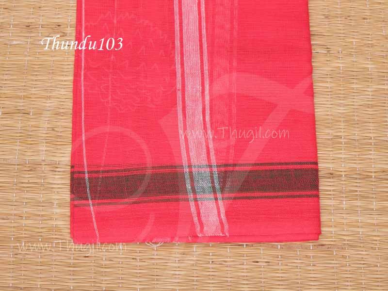 Red Cotton Dothi Towel Mens Puja Temple Thundu 2.2 meters