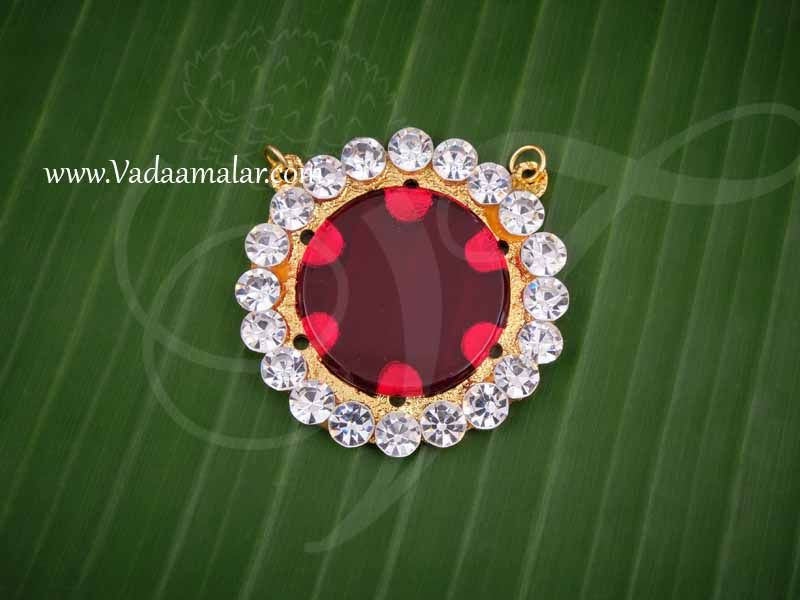 Pendant / locket white stone and Maroon enamel. Glittering stones surrounds this Oval dollar. Used to decorate the statue of Hindu Deity.
