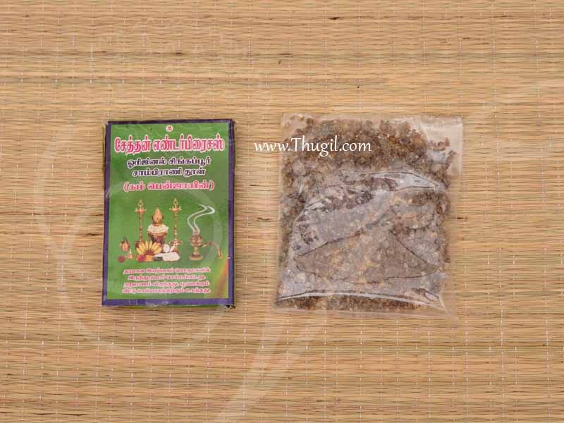 Sambrani powder is always sprinkled on glowing red charcoal. The fragrance is believed to calm the nerves and invoke tranquility. The smoky aroma that is generated by roasting the sambrani powder on burning charcoal is therapeutic, antibacterial, and curative.
