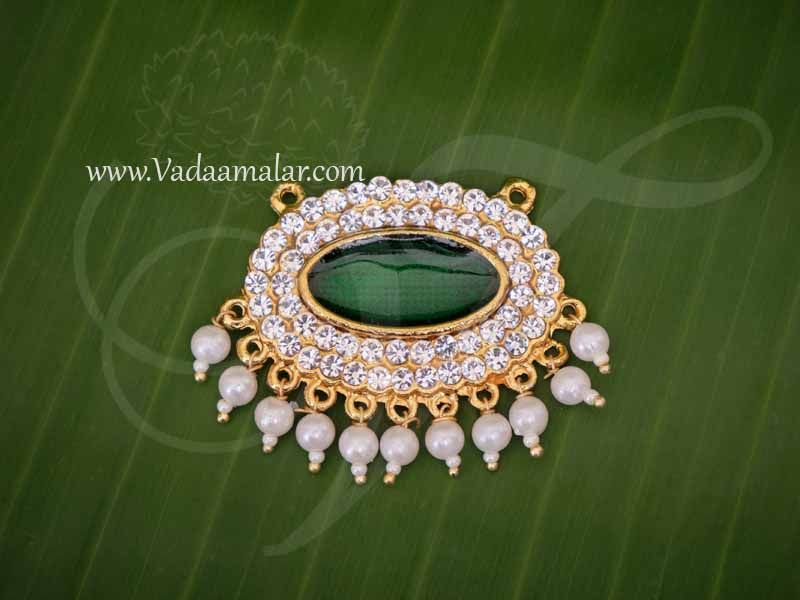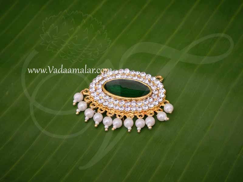 Be the first to review “Small Pendent White with Green Stone Enamel Oval Pathakam Hindu Deity Width : 2 inches”