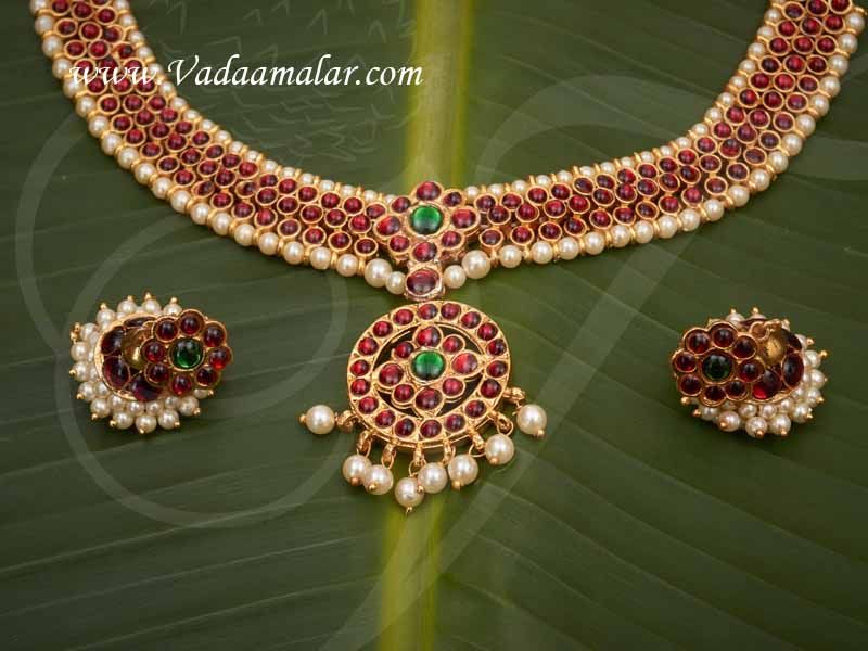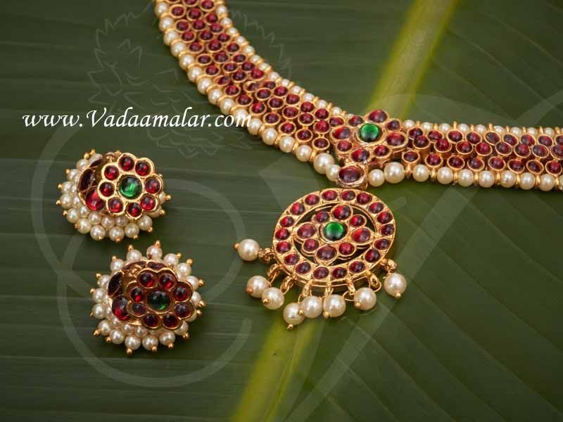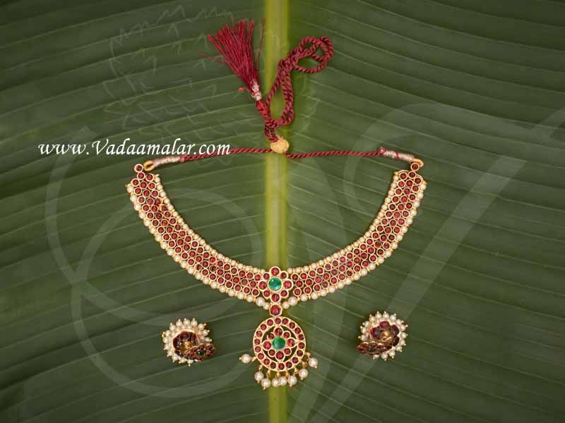 South Indian Kemp Temple Jewelry Short Necklace Jhumka Earring Temple Ornaments