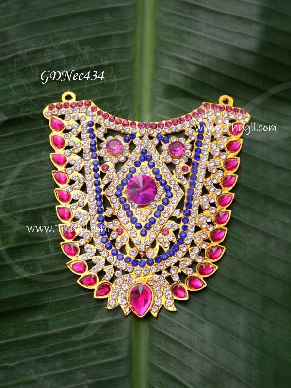Dazzling necklace in glittering Multi colour stones. Elegantly jewellery for Deity, Idols and swamy alankaram.