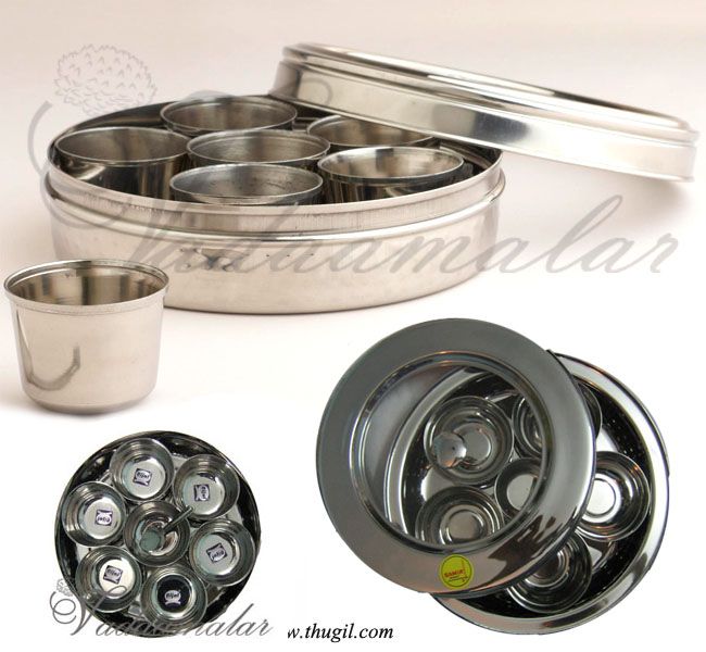 Traditional Indian Dry Spice Box Masala Dabba. High quality Stainless Steel.