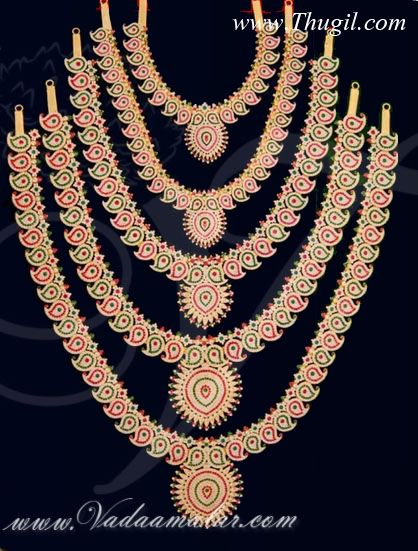 5 Step necklace sets in glittering stones. Elegantly jewelry for Deity, Idols and swamy alankaram.