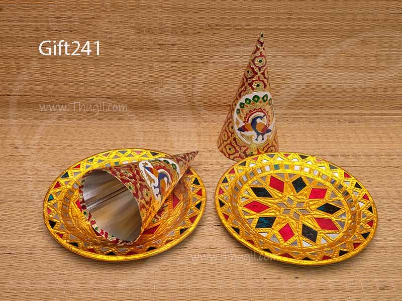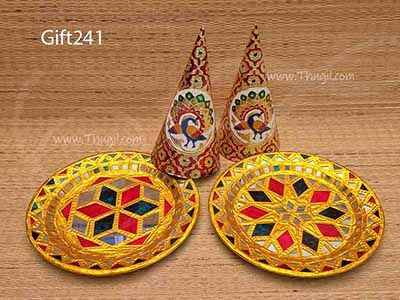 Peacock Design Tanjore styple Paruppu cone and Plate set for traditional ceremony and wedddings. Alangaram for Wedding/ All ocassions.