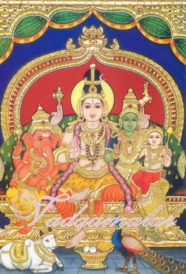 This is the Tanjore painting of Lord Shiva and Parvathi with their sons Ganapathi and Murugan.