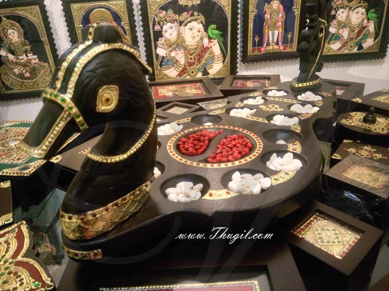 Teak wood Peacock Design Pallankuli pallanguli pallankuzhi Set Buy Now