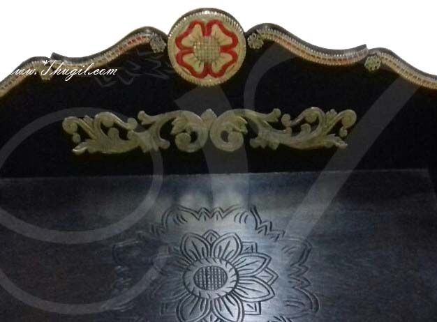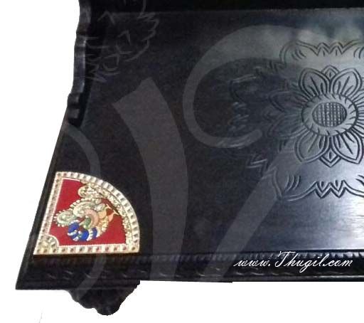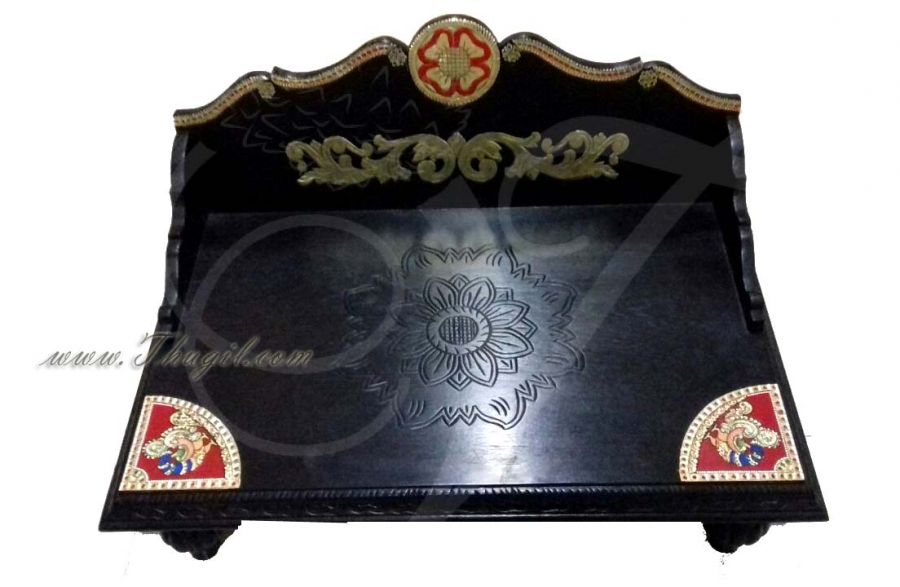 This exquisitely carved teakwood pooja peedam features a whole lot of ornate designs that capture the imagination of the onlooker and add grandeur to your pooja room.