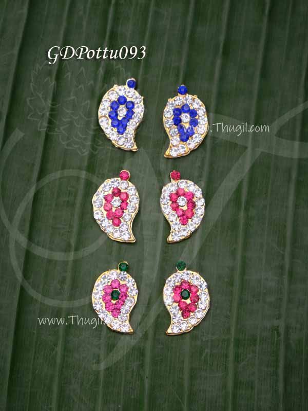 Deity forehead tikka bindi. Gold finish with multi colour stones. These mango jewels are worn on forehead like bindhi for deity Goddess statues.