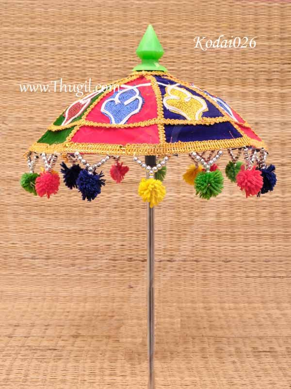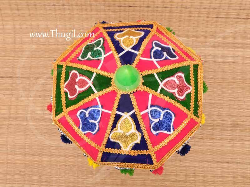 Umbrella for Hindu deity statue decoration. Swami alankaram kodai with gold lace . Colorful Kodai / umbrella is an important accessory for Vinayagar / Murugan and all other deities.