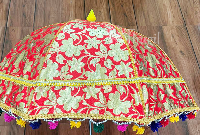 Umbrella Jari Red Gold Kodai For Wedding Puja Decorations