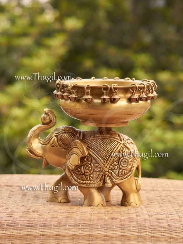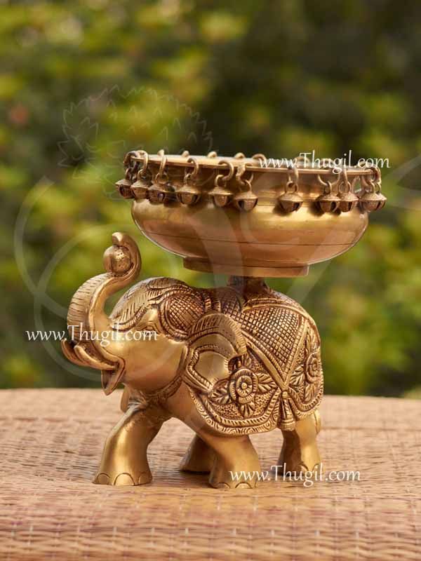 Uruli with Elephant Brass Flower Arrangement Pot 7.5 Inches