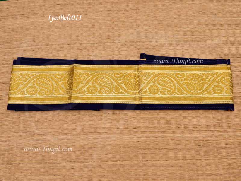 Assorted color gold border velvet waist belt Pooja 2 Zip pockets. Pujari waist belt to be used on top of mens Panjakajam Dhothi.