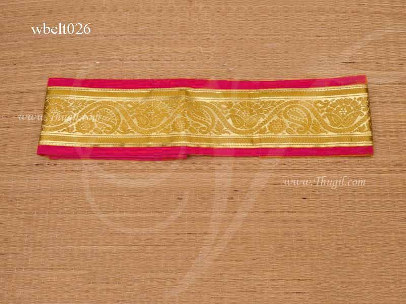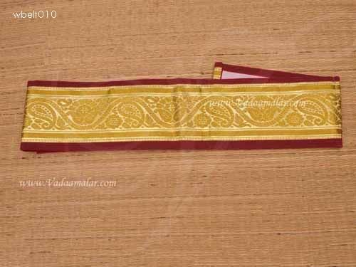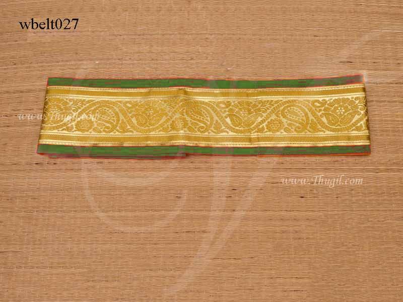 Mens waist belt to be used on top of the Panjakajam Dhothi. Assorted Color Gold border waist Belt Pooja 2 Zip Pockets.
