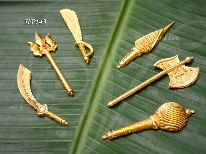 Gold polish weapons for all Hindu Gods alangaram. Used to decorate the statue of Deity.